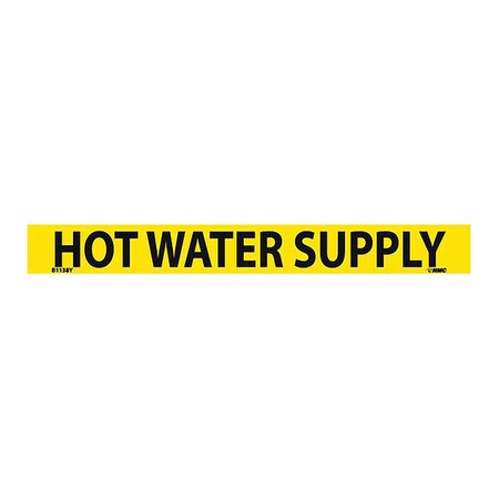 NMC B1138Y Pipemarkers Sign, Legend"HOT Water Supply", 9" Length x 1" Height, 3/4" Letter Size, Pressure Sensitive Vinyl, Black on Yellow (Pack of 25)