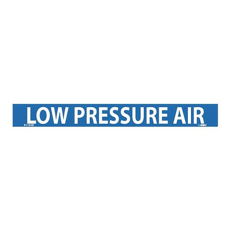 NMC B1153B Pipemarkers Sign, Legend "Low Pressure AIR", 9" Length x 1" Height, 3/4" Letter Size, Pressure Sensitive Vinyl, White on Blue (Pack of 25)