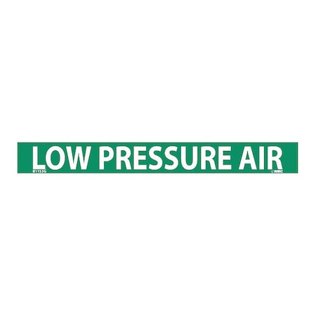 NMC B1153G Pipemarkers Sign, Legend "Low Pressure AIR", 9" Length x 1" Height, 3/4" Letter Size, Pressure Sensitive Vinyl, White on Green (Pack of 25)