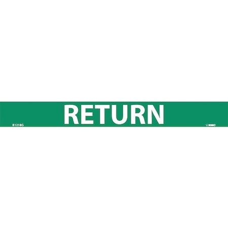 NMC B1218G Pipemarkers Sign, Legend "Return", 9" Length x 1" Height, 3/4" Letter Size, Pressure Sensitive Vinyl, White on Green (Pack of 25)