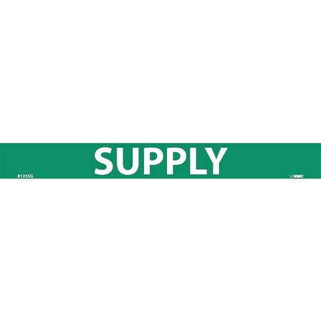 NMC B1255G Pipemarkers Sign, Legend "Supply", 9" Length x 1" Height, 3/4" Letter Size, Pressure Sensitive Vinyl, White on Green (Pack of 25)