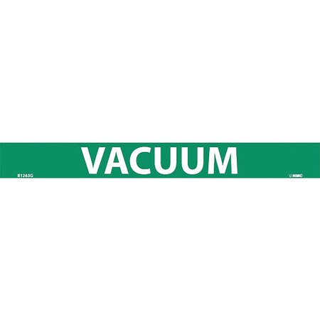 NMC B1263G Pipemarkers Sign, Legend "Vacuum", 9" Length x 1" Height, 3/4" Letter Size, Pressure Sensitive Vinyl, White on Green (Pack of 25)