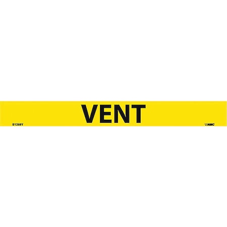 NMC B1269Y Pipemarkers Sign, Legend"Vent", 9" Length x 1" Height, 3/4" Letter Size, Pressure Sensitive Vinyl, Black on Yellow (Pack of 25)