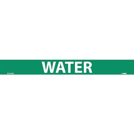 NMC B1276G Pipemarkers Sign, Legend"Water", 9" Length x 1" Height, 3/4" Letter Size, Pressure Sensitive Vinyl, White on Green (Pack of 25)