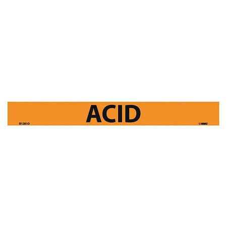 NMC B1281O Pipemarkers Sign, Legend"Acid", 9" Length x 1" Height, 3/4" Letter Size, Pressure Sensitive Vinyl, Black on Orange (Pack of 25)