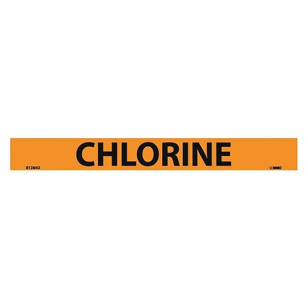 NMC B1284O Pipemarkers Sign, Legend "Chlorine", 9" Length x 1" Height, 3/4" Letter Size, Pressure Sensitive Vinyl, Black on Orange (Pack of 25)