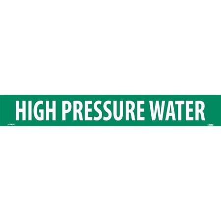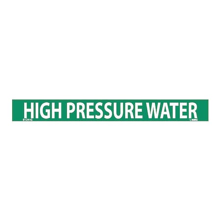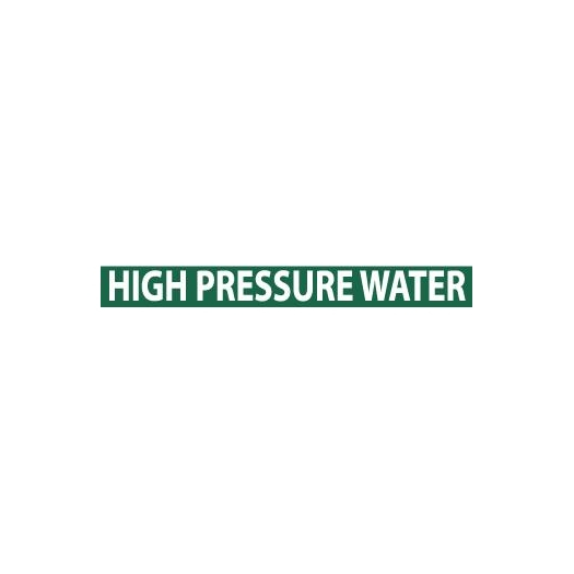 NMC B1291G Pipemarkers Sign, Legend "HIGH Pressure Water", 9" Length x 1" Height, 3/4" Letter Size, Pressure Sensitive Vinyl, White on Green (Pack of 25)