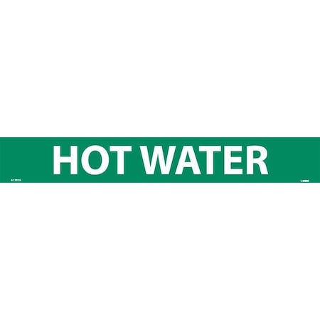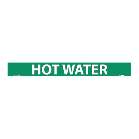 NMC B1292G Pipemarkers Sign, Legend "HOT Water", 9" Length x 1" Height, 3/4" Letter Size, Pressure Sensitive Vinyl, White on Green (Pack of 25)