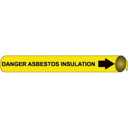 NMC B4033 "Danger Asbestos Insulation" Precoiled Pipe Marker, Fits 1 1/8"-2 3/8" Pipe, Black/Yellow