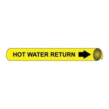NMC B4062"Hot Water Return" Precoiled Pipe Marker, Fits 1 1/8"-2 3/8" Pipe, Black/Yellow