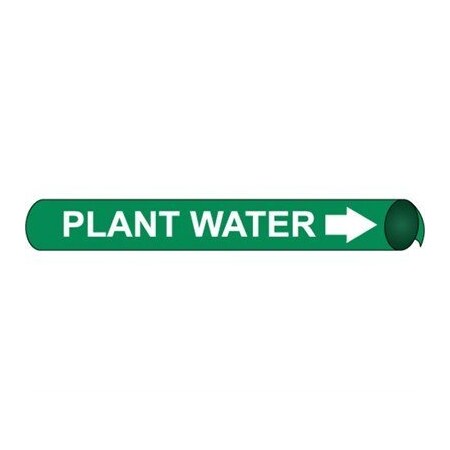 NMC B4082"Plant Water" Precoiled Pipe Marker, Fits 1 1/8"-2 3/8" Pipe, White/Green