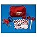 - Red nylon pouch stores a variety of supplies.