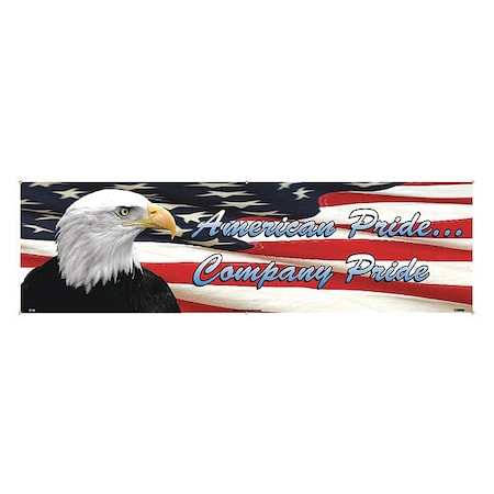 NMC BT34 Motivational and Safety Banner, Legend "AMERICAN PRIDE COMPANY PRIDE", 120" Length x 36" Height, Vinyl, Red/Blue/Black on White
