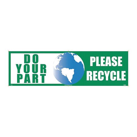 NMC BT38 Motivational and Safety Banner, Legend "DO YOUR PART PLEASE RECYCLE", 120" Length x 36" Height, Vinyl, Green/Blue on White
