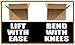 - Legend "LIFT WITH EASE BEND WITH KNEES"