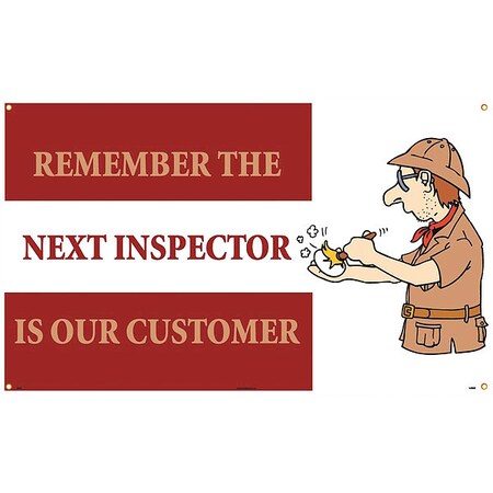 NMC BT530 Motivational and Safety Banner, Legend "REMEMBER THE NEXT INSPECTOR IS OUR CUSTOMER" with Graphic, 60" Length x 36" Height, Vinyl