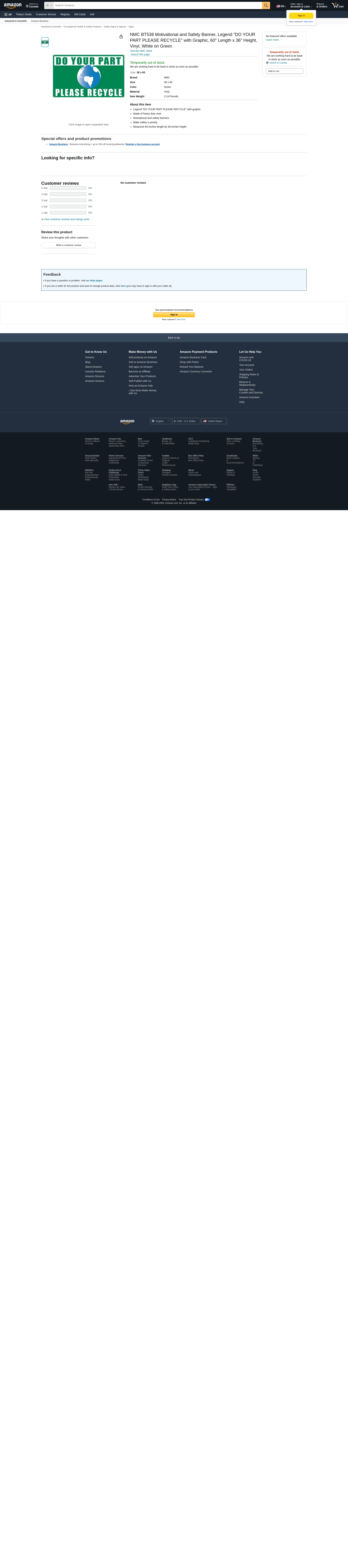 NMC BT538 Motivational and Safety Banner, Legend "DO YOUR PART PLEASE RECYCLE" with Graphic, 60" Length x 36" Height, Vinyl, White on Green