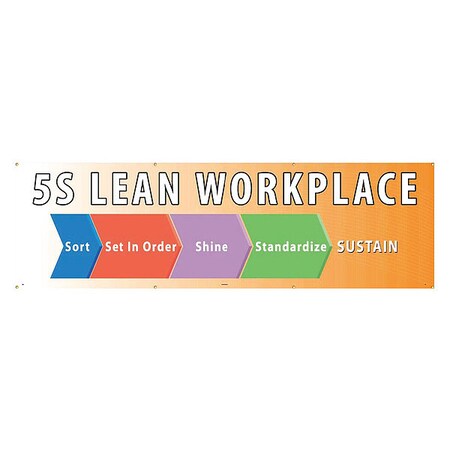 BANNER, 5S LEAN WORKPLACE SORT SET IN ORDER SHINE STANDARDIZE SUSTAIN, 3FTX10FT, POLYETHYLENE