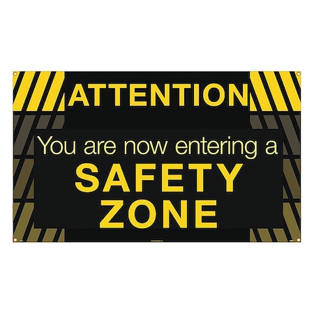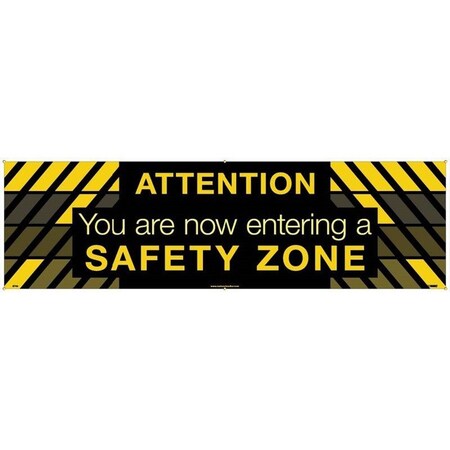 BANNER, ATTENTION YOU ARE NOW ENTERING A SAFETY ZONE, 3FT X 5FT (3 Pack)
