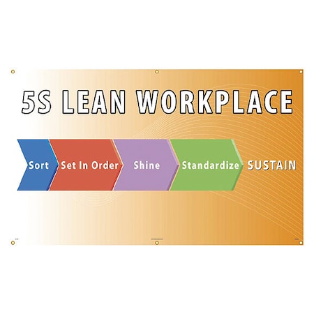NMC BT554 National Marker Banner, 5S Lean Workplace Sort Set in Order Shine Standardize Sustain, 3Ftx5Ft, Polyethylene