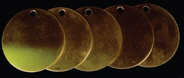 NMC BVT6R Valve Tags, Blank Round.020 Aluminum, 2" Diameter, Brass (Pack of 25)