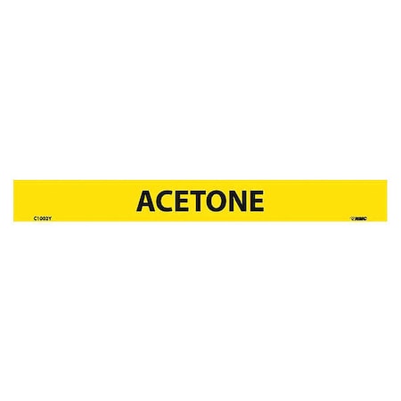 NMC C1002Y Pipemarkers Sign, Legend "Acetone", 9" Length x 1" Height, 1/2" Letter Size, Pressure Sensitive Vinyl, Black on Yellow (Pack of 25)