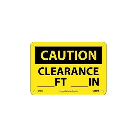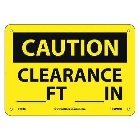 NMC C100A OSHA Sign, Legend "CAUTION - CLEARANCE ___FT. ___IN.", 10" Length x 7" Height, Aluminum, Black on Yellow
