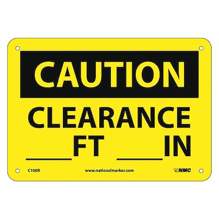 NMC C100R OSHA Sign, Legend "CAUTION - CLEARANCE ---FT. ---IN.", 10" Length x 7" Height, Rigid Plastic, Black on Yellow