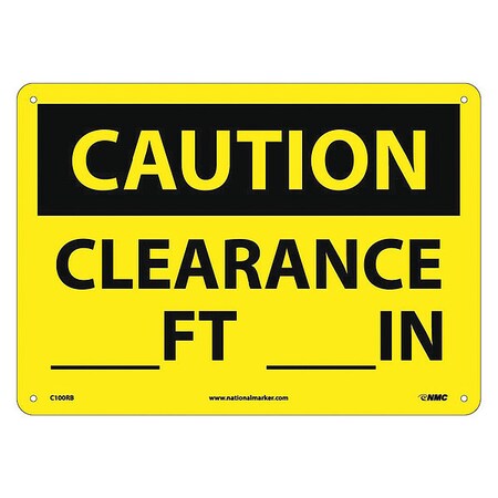 NMC C100RB OSHA Sign, Legend "CAUTION - CLEARANCE ---FT. ---IN.", 14" Length x 10" Height, Rigid Plastic, Black on Yellow