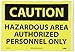 - Message: CAUTION Hazardous Area Authorized Personnel Only