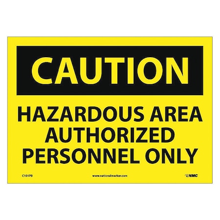 NMC C101PB OSHA Sign, Legend "CAUTION - HAZARDOUS AREA AUTHORIZED PERSONNEL ONLY", 14" Length x 10" Height, Pressure Sensitive Vinyl, Black on Yellow