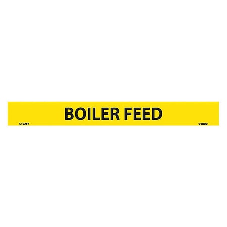NMC C1026Y Pipemarkers Sign, Legend "Boiler Feed", 9" Length x 1" Height, 1/2" Letter Size, Pressure Sensitive Vinyl, Black on Yellow (Pack of 25)