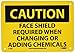 | Feature | Header "CAUTION" and legend "FACE SHIELD REQUIRED WHEN CHANGING OR ADDING CHEMICALS" |