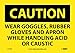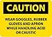 | Feature | Header "CAUTION" and legend "WEAR GOGGLES RUBBER GLOVES AND APRON WHILE HANDLING ACID OR CAUSTIC" |