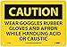 | Feature | Header "CAUTION" and legend "WEAR GOGGLES RUBBER GLOVES AND APRON WHILE HANDLING ACID OR CAUSTIC" |