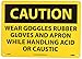 | Feature | Header "CAUTION" and legend "WEAR GOGGLES RUBBER GLOVES AND APRON WHILE HANDLING ACID OR CAUSTIC" |