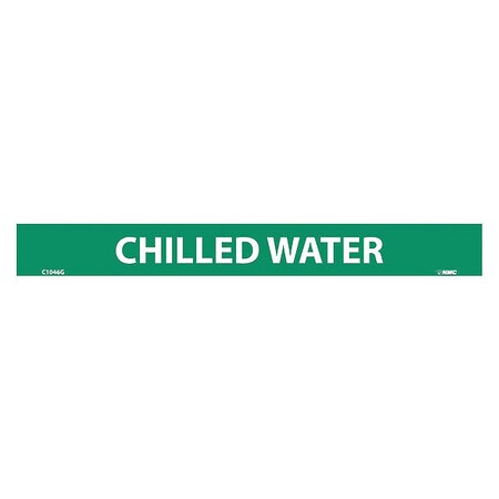 NMC C1046G Pipemarkers Sign, Legend "Chilled Water", 9" Length x 1" Height, 1/2" Letter Size, Pressure Sensitive Vinyl, White on Green (Pack of 25)