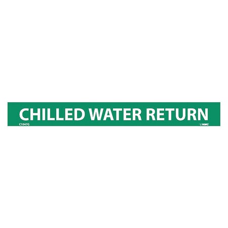 NMC C1047G Pipemarkers Sign, Legend "Chilled Water Return", 9" Length x 1" Height, 1/2" Letter Size, Pressure Sensitive Vinyl, White on Green (Pack of 25)