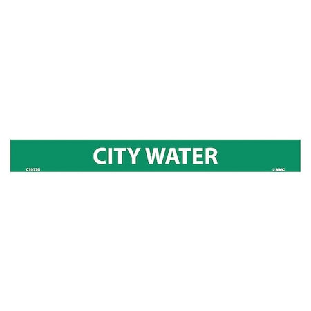 NMC C1053G Pipemarkers Sign, Legend "City Water", 9" Length x 1" Height, 1/2" Letter Size, Pressure Sensitive Vinyl, White on Green (Pack of 25)