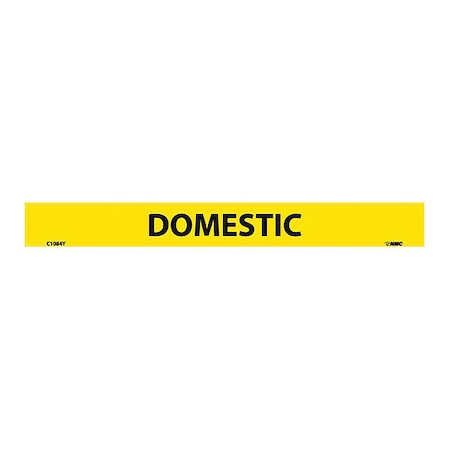NMC C1084Y Pipemarkers Sign, Legend "Domestic", 9" Length x 1" Height, 1/2" Letter Size, Pressure Sensitive Vinyl, Black on Yellow (Pack of 25)