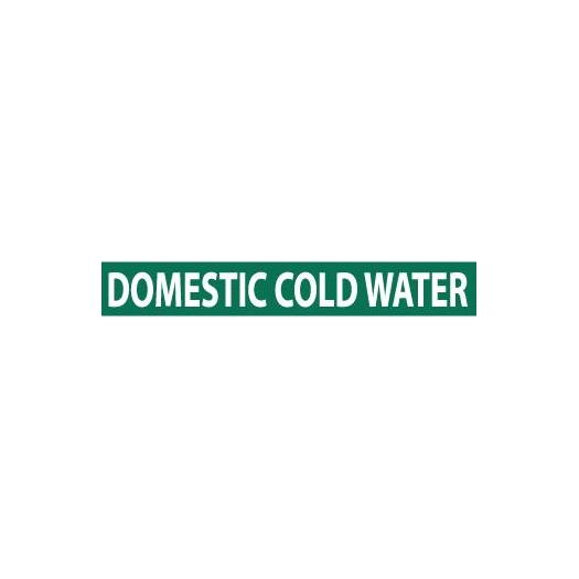 NMC C1085G Pipemarkers Sign, Legend "Domestic Cold Water", 9" Length x 1" Height, 1/2" Letter Size, Pressure Sensitive Vinyl, White on Green (Pack of 25)