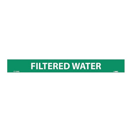 NMC C1104G Pipemarkers Sign, Legend "Filtered Water", 9" Length x 1" Height, 1/2" Letter Size, Pressure Sensitive Vinyl, White on Green (Pack of 25)