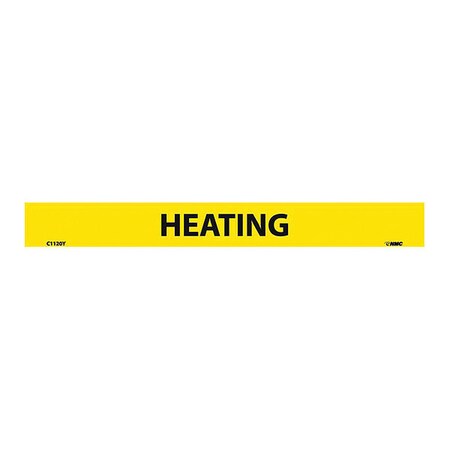 NMC C1120Y Pipemarkers Sign, Legend"Heating", 9" Length x 1" Height, 1/2" Letter Size, Pressure Sensitive Vinyl, Black on Yellow (Pack of 25)