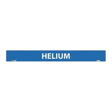 NMC C1126B Pipemarkers Sign, Legend "Helium", 9" Length x 1" Height, 1/2" Letter Size, Pressure Sensitive Vinyl, White on Blue (Pack of 25)