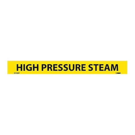NMC C1132Y Pipemarkers Sign, Legend "HIGH Pressure STEAM", 9" Length x 1" Height, 1/2" Letter Size, Pressure Sensitive Vinyl, Black on Yellow (Pack of 25)