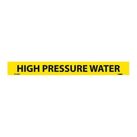 NMC C1133Y Pipemarkers Sign, Legend "HIGH Pressure Water", 9" Length x 1" Height, 1/2" Letter Size, Pressure Sensitive Vinyl, Black on Yellow (Pack of 25)