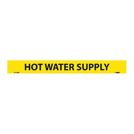 NMC C1138Y Pipemarkers Sign, Legend "HOT Water Supply", 9" Length x 1" Height, 1/2" Letter Size, Pressure Sensitive Vinyl, Black on Yellow (Pack of 25)