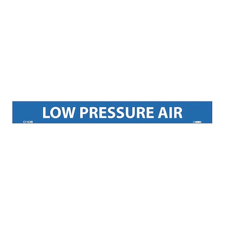 NMC C1153B Pipemarkers Sign, Legend "Low Pressure AIR", 9" Length x 1" Height, 1/2" Letter Size, Pressure Sensitive Vinyl, White on Blue (Pack of 25)