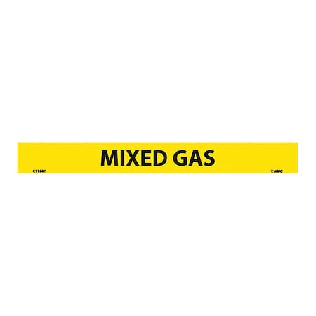 NMC C1168Y Pipemarkers Sign, Legend"Mixed Gas", 9" Length x 1" Height, 1/2" Letter Size, Pressure Sensitive Vinyl, Black on Yellow (Pack of 25)
