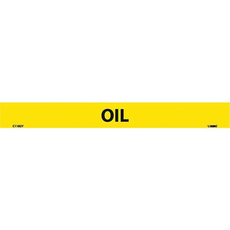 NMC C1182Y Pipemarkers Sign, Legend "Oil", 9" Length x 1" Height, 1/2" Letter Size, Pressure Sensitive Vinyl, Black on Yellow (Pack of 25)